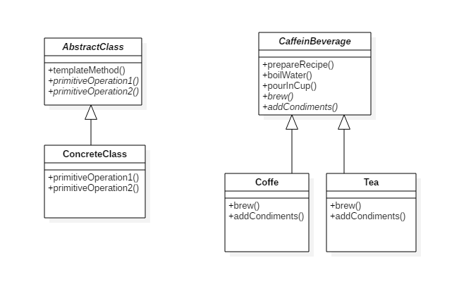 - 서브클래스에서 템플릿메서드에 들어있는 알고리즘을 함부로 바꾸지 못하게 하고 싶다면 템플릿 메서드를 final로 선언하면된다.